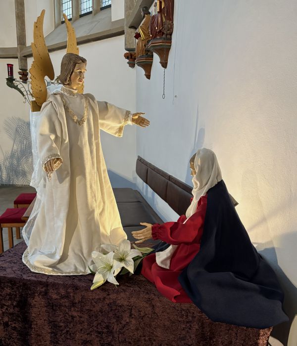 Am Ersten Adventssonntag beginnt in der Katholischen Kirche das Neue Jahr. Pastor Friedrichs segnete den Adventskranz und besonders die 1. brennende Kerze. Er bemängelte in der Kirche, dass die Adventszeit nicht die der katholischen Kirche ist, sondern nur dem menschlichen Vergnügen gilt. In dieser Zeit werden die Weihnachtsmärkte eröffnet und das Leben genießt man in vollen Zügen.